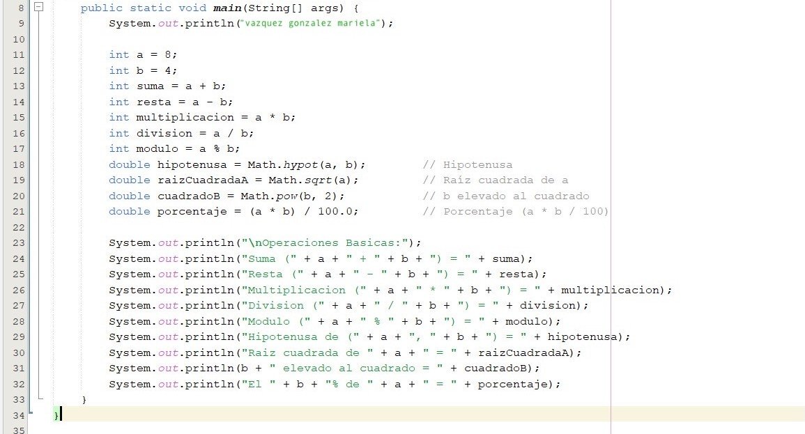El resultado de cada operación se imprime en consola, sirviendo como ejercicio de práctica de operadores matemáticos y funciones de la clase Math en Java.